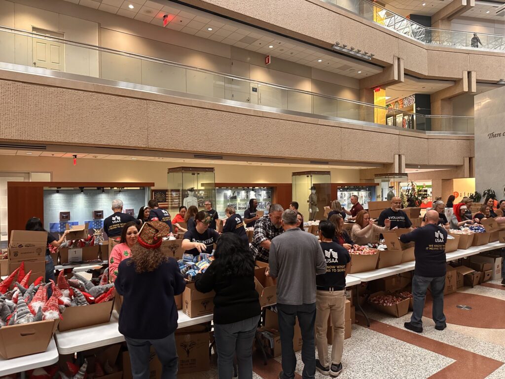 This incredible effort reflects the scale and heart behind USAA’s long-standing commitment to the Military community. Across seven USAA campuses this holiday season, teams came together to pack nearly 15,000 holiday stockings and care packages filled with care, gratitude, and encouragement.